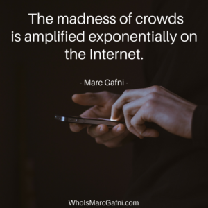 An intense demonization would begin to take place, and the demonizations built on each other until you could have dozens of stories which are all little moments that got distorted, twisted, and then people say, “Oh my god, there’s dozens of stories, it must be true.” It’s not. It’s a kind of process of the madness of crowds. Now, the madness of crowds is amplified exponentially on the Internet. It’s not Salem. It’s the Internet where hate trolling, madness of crowds, ulterior agendas, collusion between parties, those are all hidden.