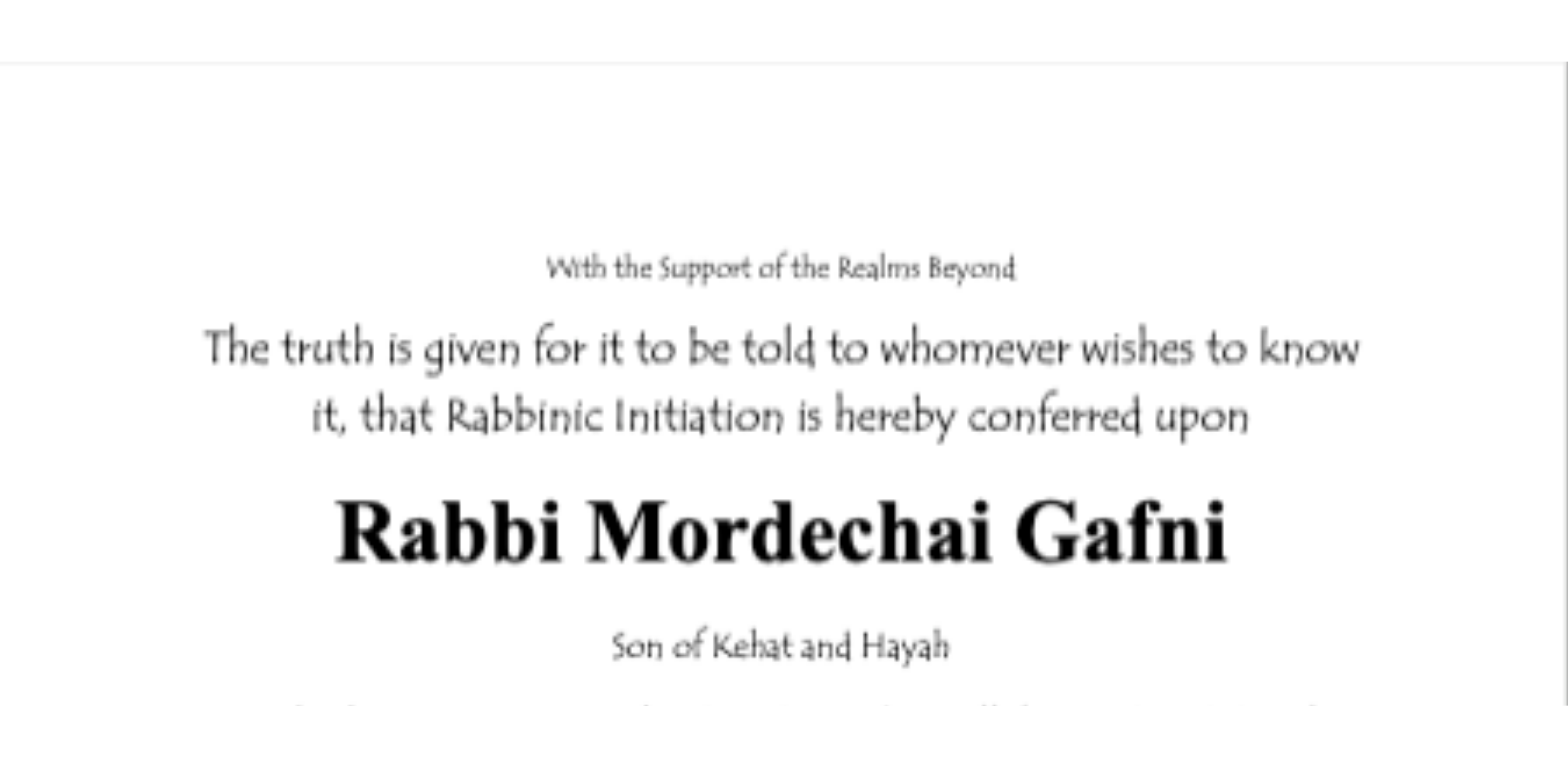 - Gafni currently holds his ordination from Rabbi Gershon Winkler in 2008.